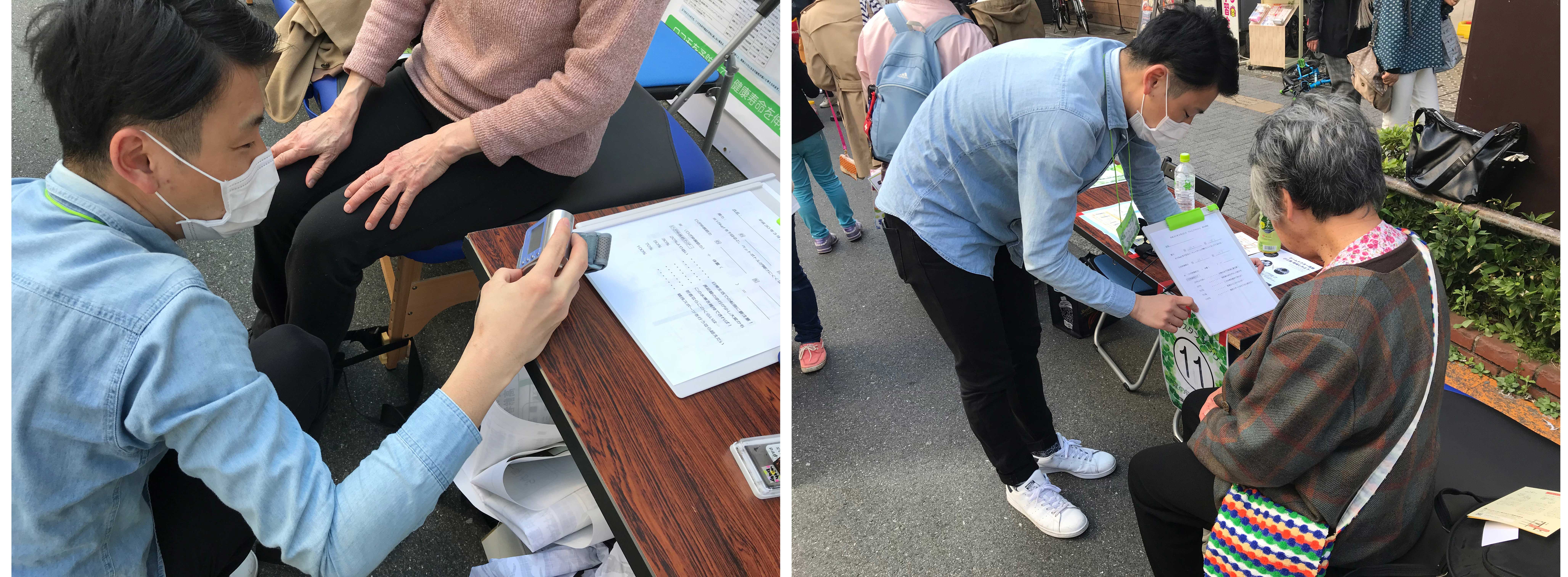 そのような意図から、コミュニティセンターなど自治体施設や商業施設でのイベントのようなさまざまな場にミュータスF1による筋力計測のコーナーを設けて、まずは色々な人に筋力を計ってもらう機会を設けているということです。