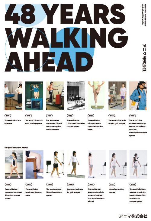 Walking ahead for 48 years. バイオメカニクスを追い続けて、弊社は今年で、創業48年になります。これまで培ってきたバイオメカニクステクノロジーの歴史の一部ではございますが、本パンフレットを是非ご覧ください。