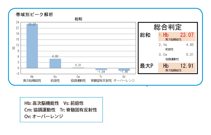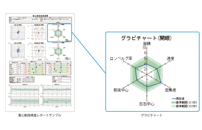 からだのふらつきや、めまい・平衡障害のスクリーニングに適しています。日本人の健常値データーを内蔵し、ニューラルネット(人工知能)解析技術によって、「健常」・「異常」の程度を自動識別します。またラバー負荷検査により末梢前庭障害の有無を簡単にスクリーニングすることができ、上位機種では、「迷路障害」・「中枢障害」の自動識別が出来ます。臨床において、めまい・平衡障害の検査に利用されるほか、リハビリテーション医学、歯科、スポーツ医学、体育など、広い分野で平衡機能の評価に利用されています。