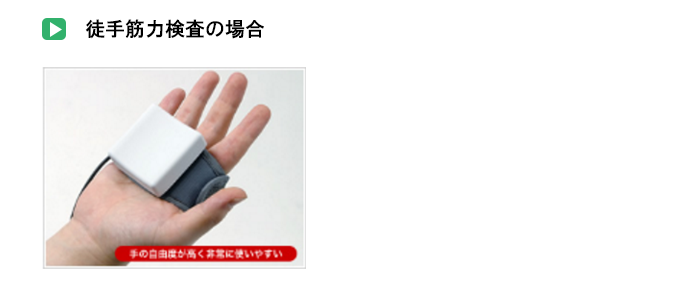 検者の主観的判断に依存する徒手筋力テストの問題点をカバーし、簡便で客観的な筋力評価を可能にする固定用ベルト方式の筋力計です。