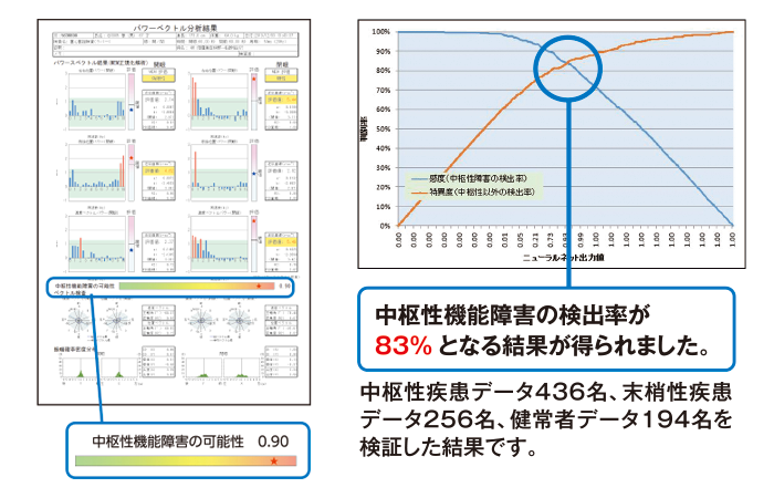 - 中枢機能障害をパワーベクトル検査により80%以上の確率で識別