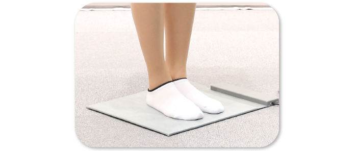 ラバー負荷検査では、閉眼によって視覚からの入力を遮断することに加え、フォームラバー負荷で体性感覚からの入力を遮断することで前庭障害の有無を検出します。