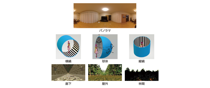 7種の仮想空間背景を選択でき、5種の刺激の種類もお選びいただけます。