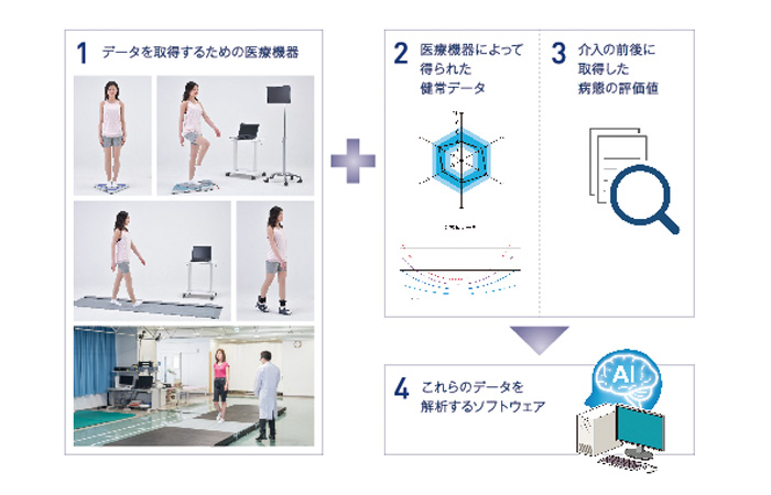 リハビリテーションでは、来られる患者様の疾患や病態ごとに評価したい内容が変わります。そのため、より多くの疾患や介入方法に対して、これらの方法で評価していく必要があります。このようにして、リハビリテーションの医学において人間をサポートする知的システムの構築(IA:知能増幅器(Intelligence Amplifier)) を目標としています。