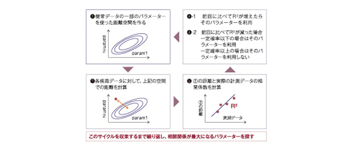- パラメーター群を変更させて、相関係数が1に近づくようなものを選ぶ