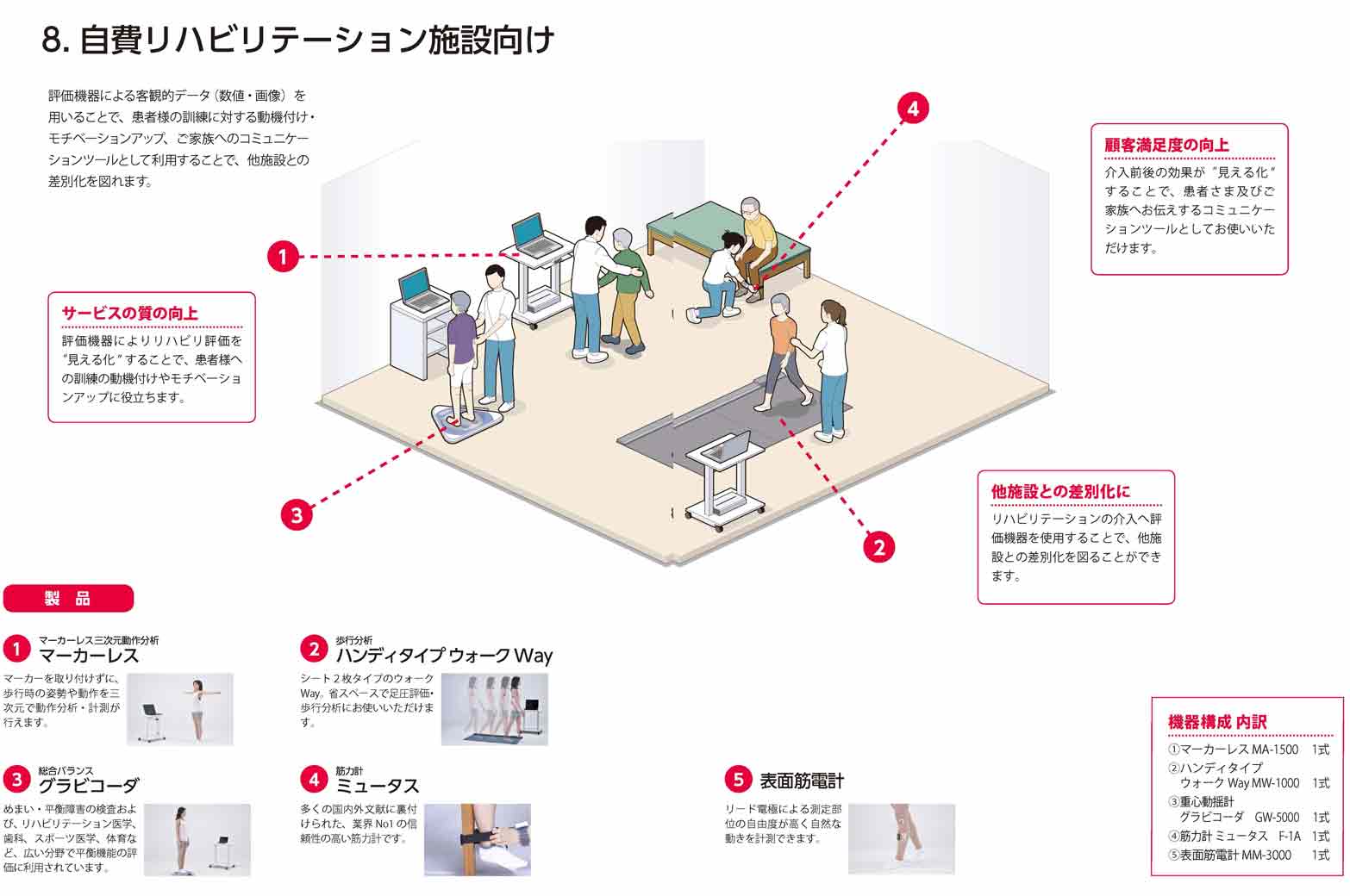 評価機器による客観的データ(数値・画像)を用いることで、患者様の訓練に対する動機付け・モチベーションアップ、ご家族へのコミュニケーションツールとして利用することで、他施設との差別化を図れます。