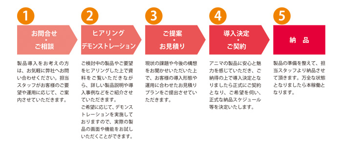 アニマ社の製品は、国内で開発・製造・販売まで一貫して自社で行っているので、サービス体制も整っており、迅速に対応できますので、お客様には安心してお使いいただけます。